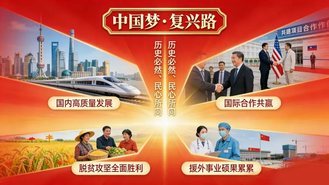 没有任何势力能阻挡中国前进的步伐,没有任何杂音能干扰民族复兴的征程。从国内高质量发展到国际合作共赢,从脱贫攻坚全面胜利到援外事业硕果累累,中国用行动证明,中国梦的实现,是历史必然、民心所向,不以任何人的意志为转移。