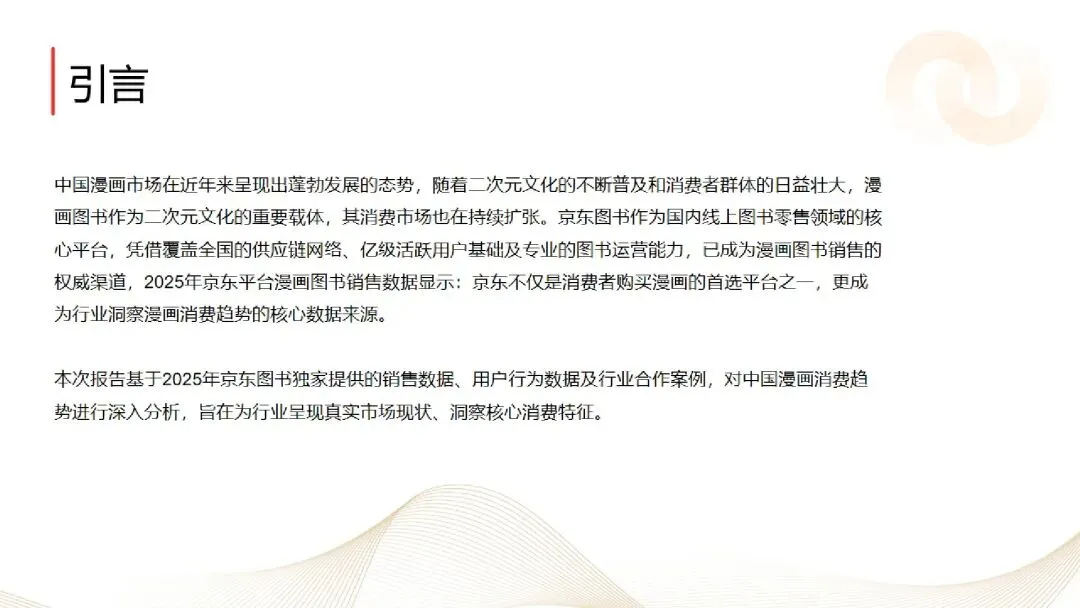 基于京东图书 2025 年销售与用户行为数据,报告分析中国漫画消费市场规模、品类分布、消费群体特征,对比国产与海外引进漫画的销售表现,挖掘传统文化赋能、IP 联动、收藏热潮等核心趋势,揭示小红书等平台的营销价值,为行业提供市场洞察与发展参考。