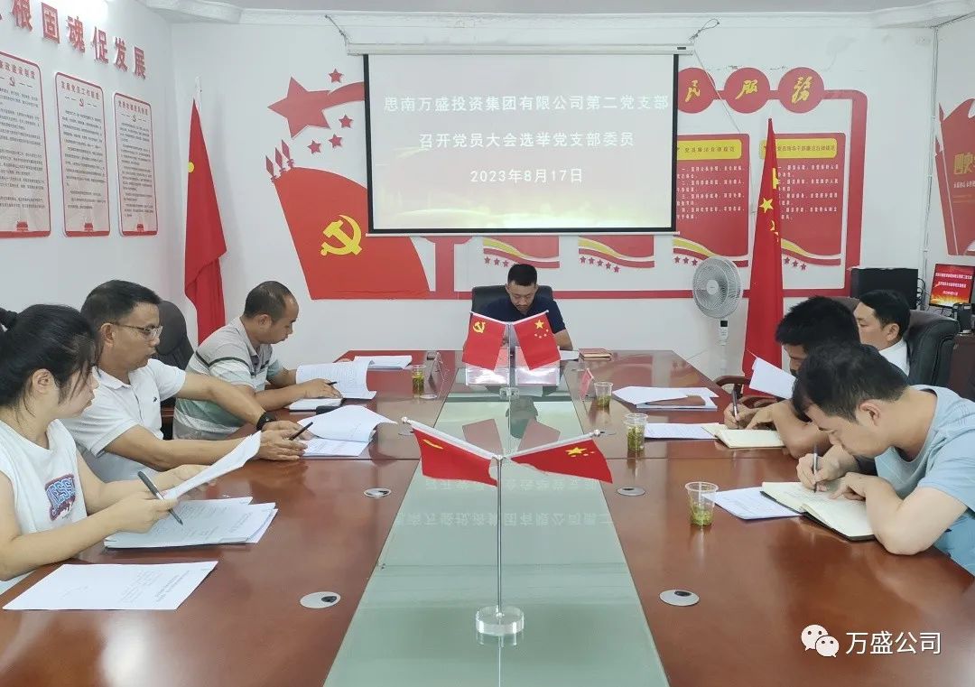 8月17日,中共思南万盛投资集团有限公司第二支部委员会召开党员大会,选举中共思南万盛投资集团有限公司第二支部委员会委员,会议由集团公司党委副书记翁晓青主持,第二党支部全体党员参会。会上,审议通过了《中国共产党思南万盛投资集团有限公司第二支部委员会党员大会选举办法》和监票人、计票人名单。采取无记名投票方式,差额选举产生了中共思南万盛投资集团有限公司第二支部委员会委员。委员成功选举后,接着召开中共思南万盛投资集团有限公司第二支部委员会第一次全体会议,等额选举产生党支部书记1名,并明确了委员分工。