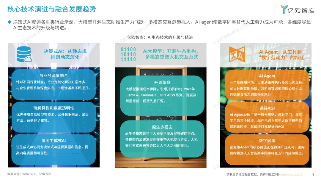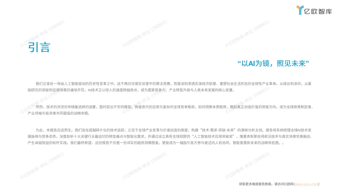 《2025全球人工智能技术应用洞察报告》聚焦全球AI产业变革,清晰勾勒出美欧中三方主导的竞争格局,深入解读了多模态交互、AI Agent、开源革命等核心技术走向。报告展示了AI在互联网、金融、医疗等十大行业的场景化突破,通过设立“全球人工智能技术应用突破奖”树立行业标杆,同时预判未来市场将聚焦行业化、场景化、生态化竞争,数据安全、伦理合规与人才短缺三大挑战亟待应对。
