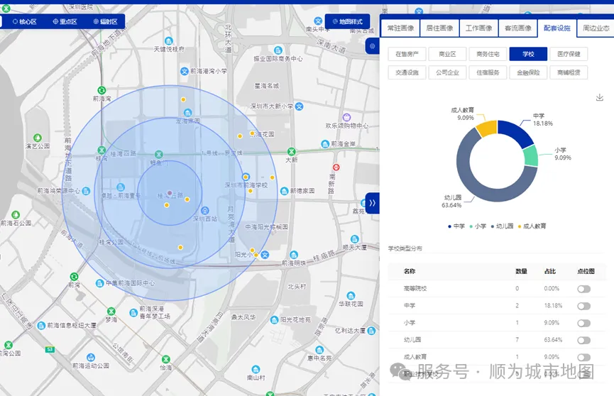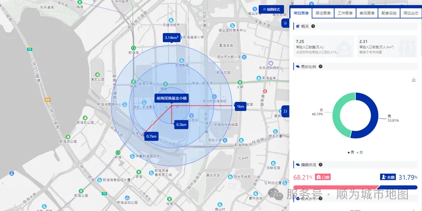 深圳前海深港基金小镇位于深圳市前海深港现代服务业合作区,是一个集金融、科技、文化和创新为一体的区域。本文将围绕该区域1公里半径范围内的商圈进行分析,依据提供的数据对人口结构、行业分布、消费偏好以及周边商业设施等方面展开讨论,评估其商圈的现状和潜力。