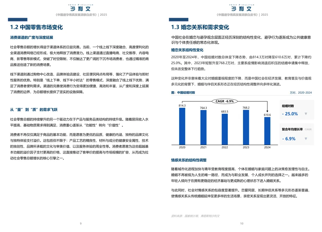 中国避孕用具市场正经历深刻变革,从基础防护需求向体验升级与价值多元化转型。城镇居民收入和消费持续增长,推动消费重心由“生存型”转向“品质型”,健康意识增强,性健康观念逐步开放,为避孕套等两性健康产品提供了更广阔的市场空间。