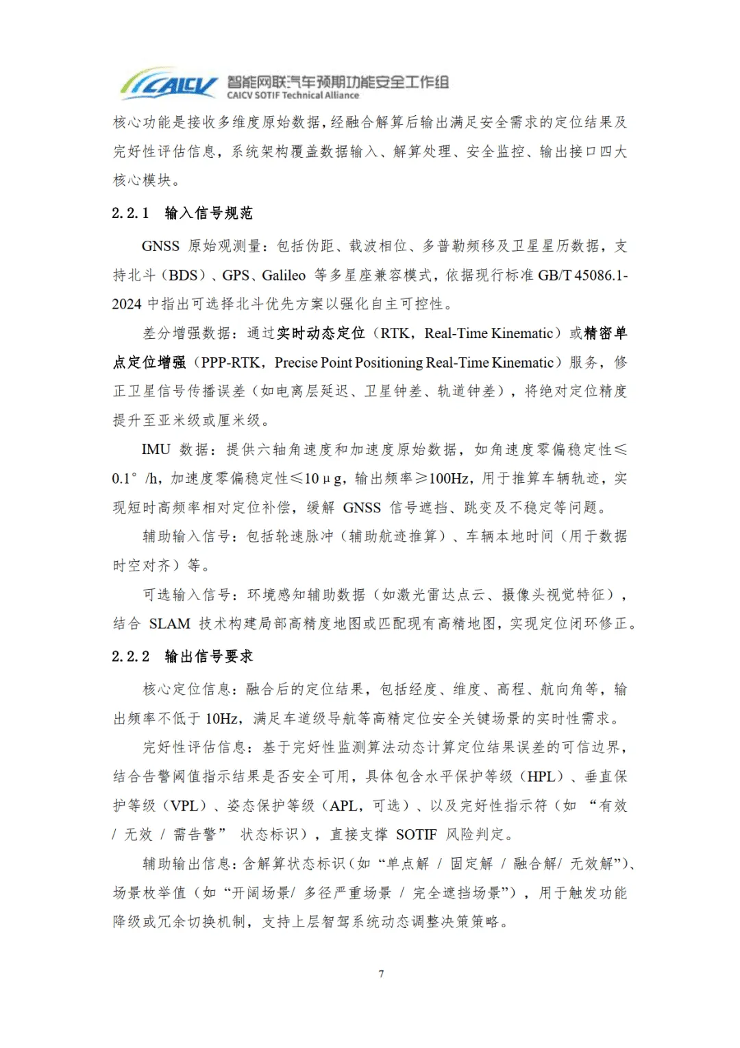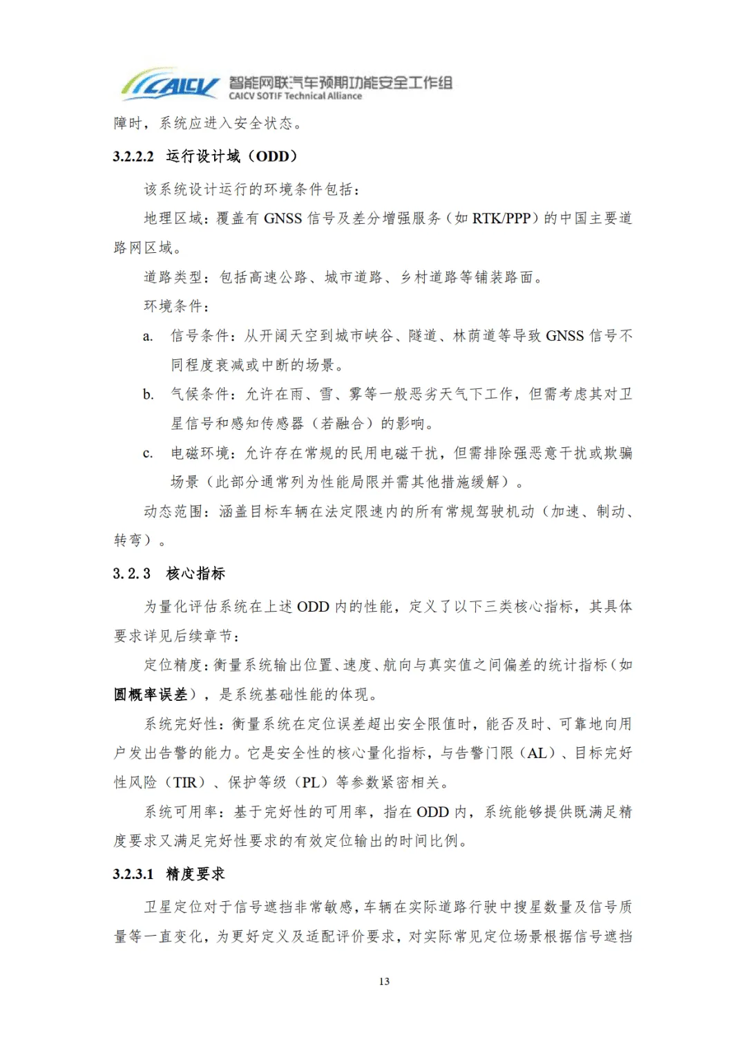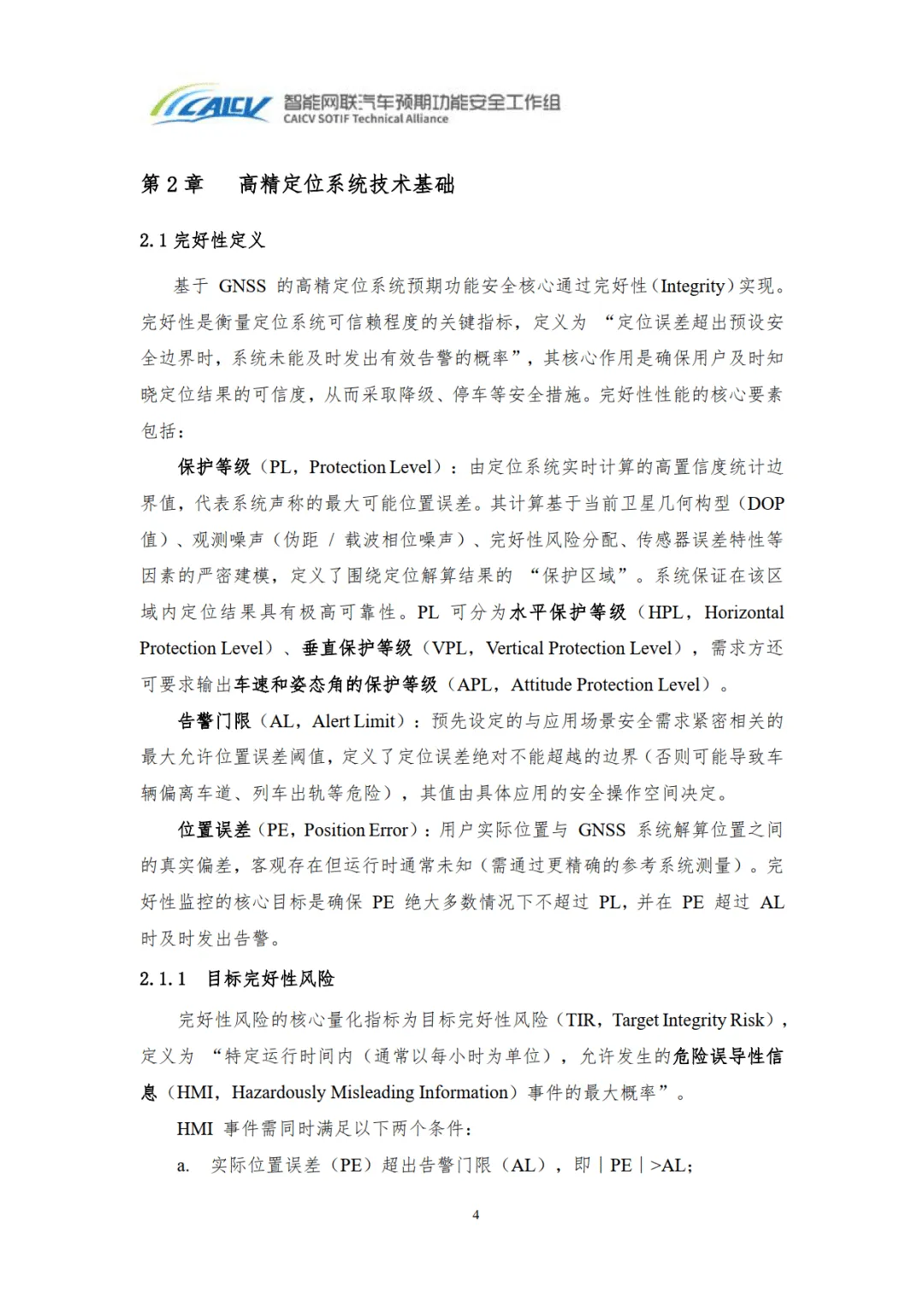 报告明确,高精定位系统是 L3 及以上级别自动驾驶的核心基础设施,通过融合 GNSS、IMU、轮速传感器等多源数据,实现厘米级至分米级动态定位。其预期功能安全核心在于完好性,通过保护等级、告警门限、位置误差等指标量化风险,目标是将危险误导性信息事件概率控制在预设目标完好性风险范围内。