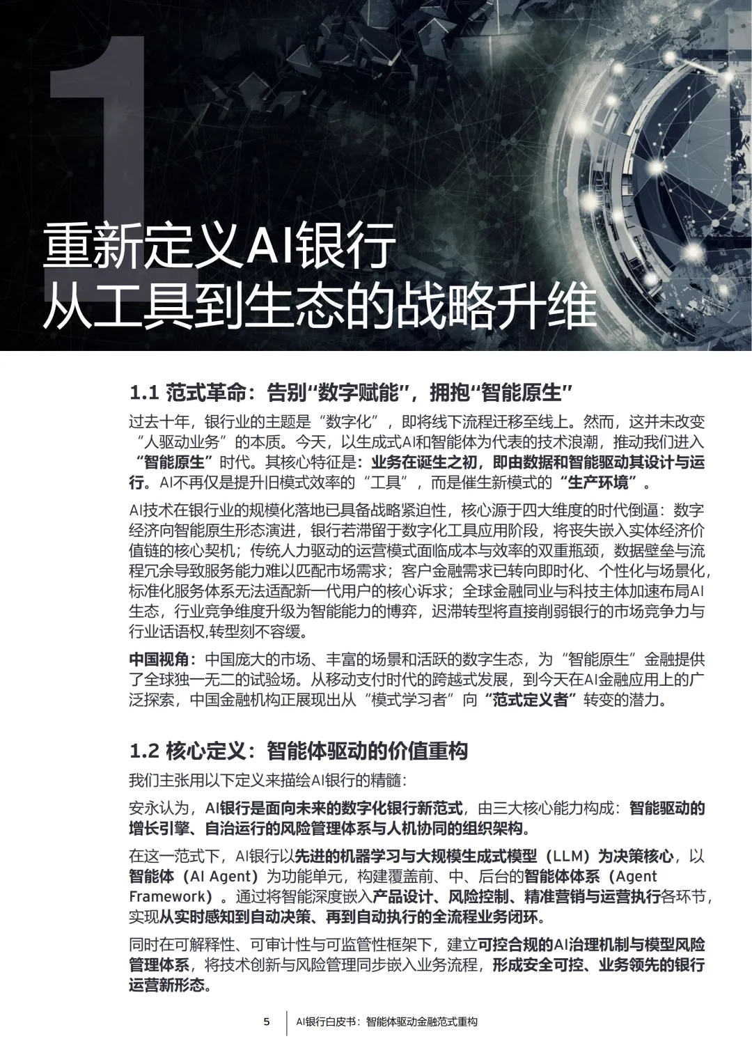 白皮书开宗明义地指出,AI银行并非简单技术升级,而是金融业百年变革的起点。其核心范式转变体现在: