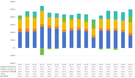 2025年,全球央行购金需求依然保持高位,官方机构增持863吨黄金。尽管全年需求未能突破此前连续三年超年均1000吨的水平,但央行购金仍是2025年全球黄金需求的重要推动力,为整体需求提供了增量。