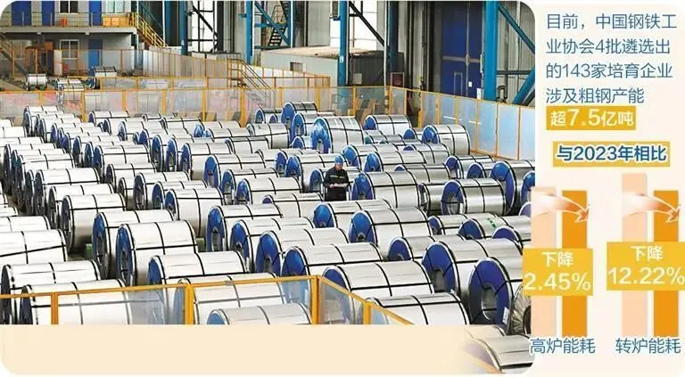 中钢协专务理事张永杰介绍,钢铁行业极致能效工程以“三清单、两标准、一数据系统”为主线,依托“双碳最佳实践能效标杆示范厂”培育,有序推动钢铁行业重点工序能效达标,促进钢铁工业绿色高质量发展。截至目前,4批遴选出的143家培育企业涉及粗钢产能超7.5亿吨,仅高炉、转炉能耗就较2023年分别下降2.45%、12.22%,累计节能1320万吨标准煤,减排二氧化碳3400万吨。