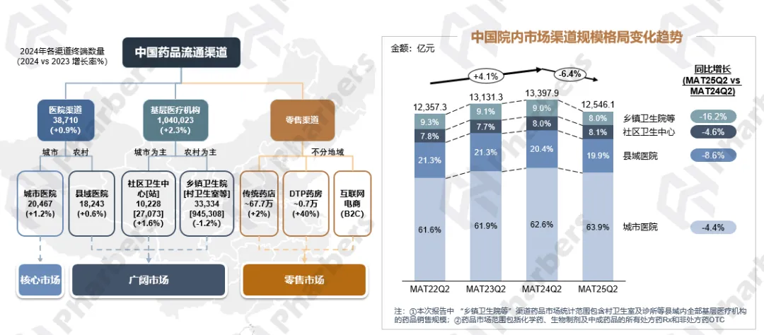 在此前的分享中,我们围绕我国城乡经济人口发展趋势以及政策影响下的医院终端发展进行了概述(点击相关阅读)。本期,我们将继续深入药品市场本身,聚焦城市vs县域药品市场的总体发展,从整体市场规模、增长趋势、院内头部企业及产品表现等维度,全面展现城乡药品市场的真实图景。