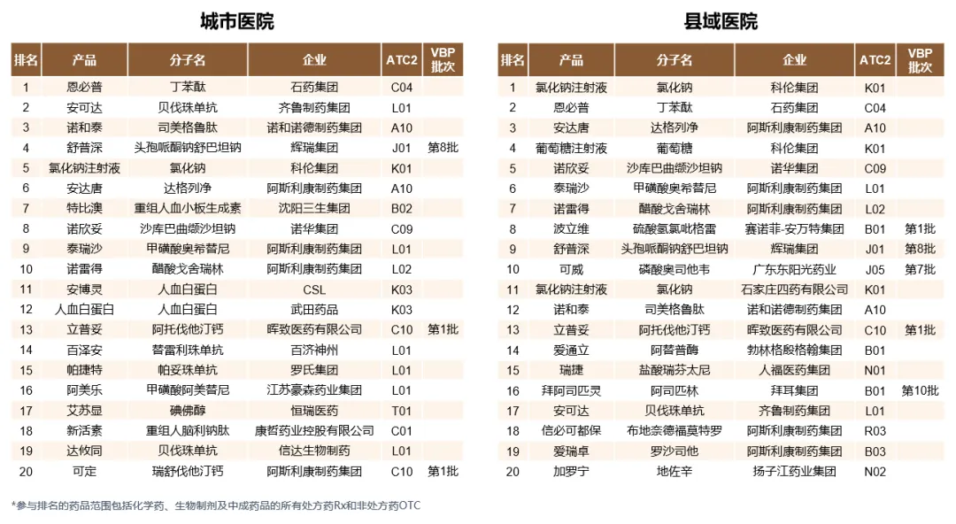 城市vs县域医院渠道头部企业及产品