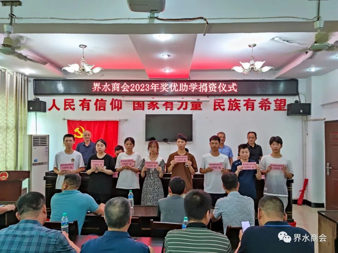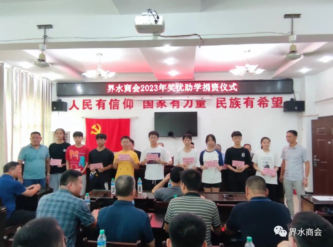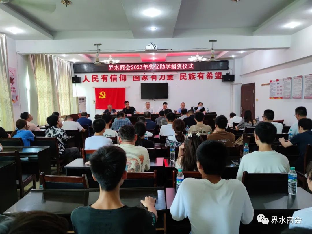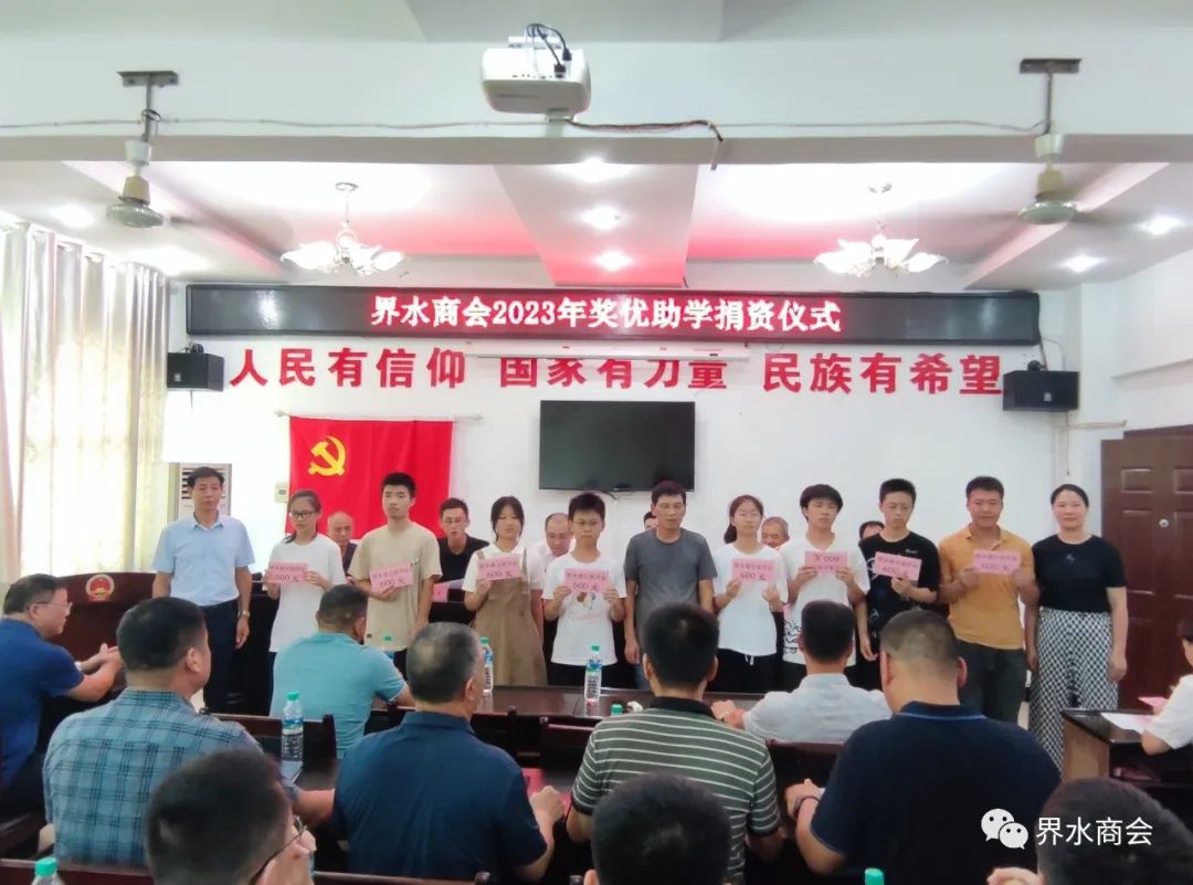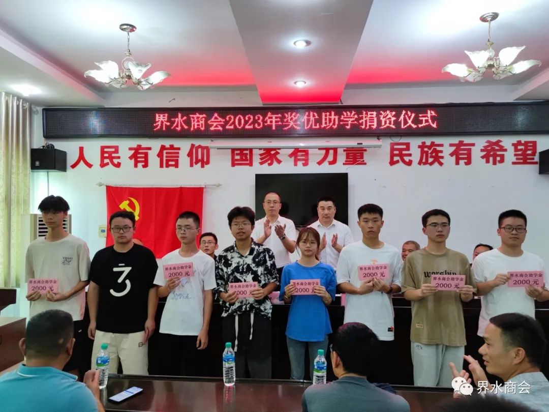 百年大计,教育为本。为了鼓励界水乡即将迈入高等学府的莘莘学子,树立进取学习的榜样,营造尊师重教的氛围,8月7日上午十点,界水商会在界水乡政府召开界水商会2023年度奖优助学仪式,表彰了在今年高考中取得优异成绩的27名界水乡学子和26名考上重点高中的界水籍初中毕业生。