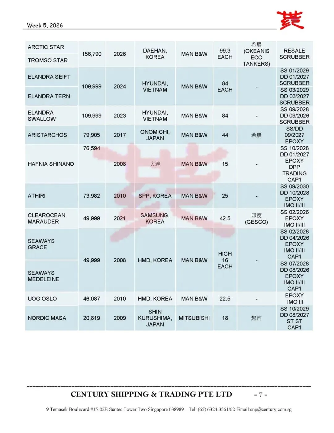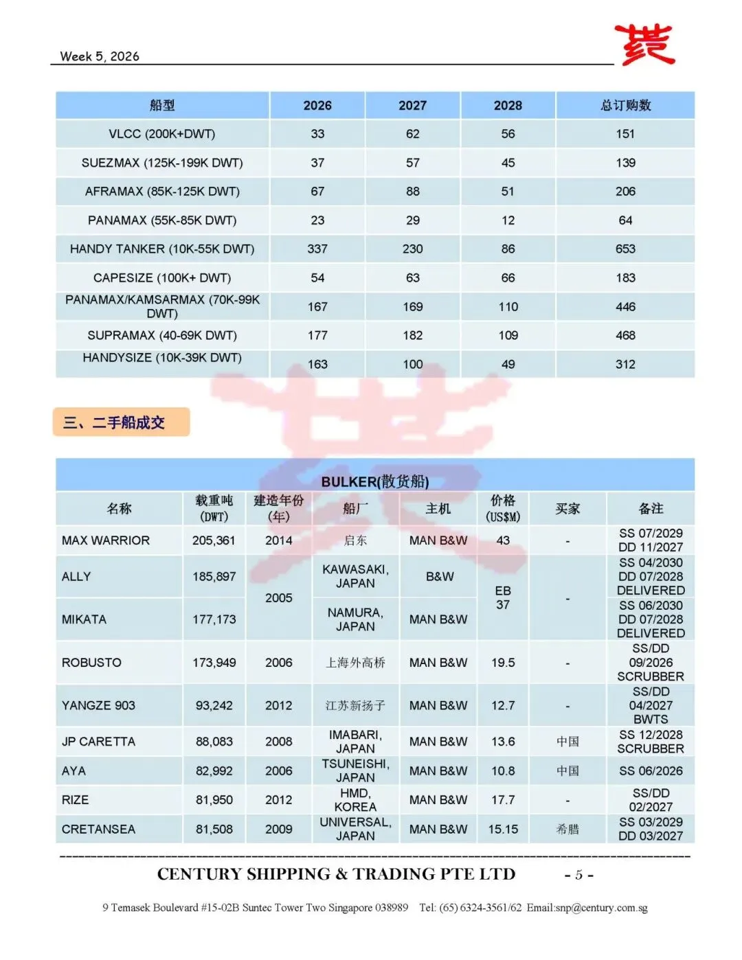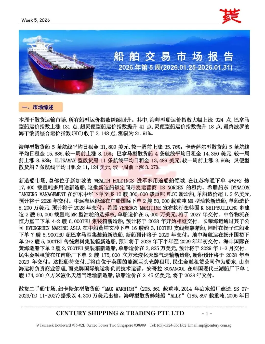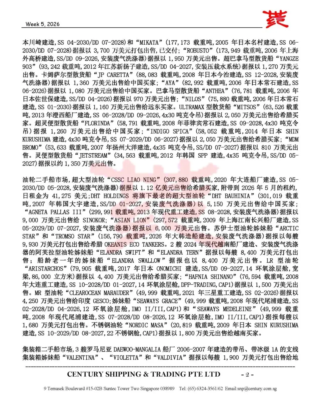 第5周船舶交易市场报告