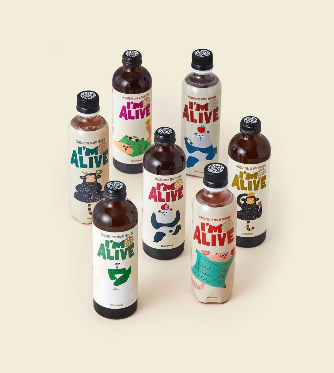 I'M ALIVE 是韩国一个100%天然碳酸康普茶品牌,经过 506 小时的自然发酵过程制成。Mobills Group与设计公司DOLPHINERS 合作,设计了全新的包装形象并开发了 I'm Alive 的韩语版跟英文版的品牌标识。