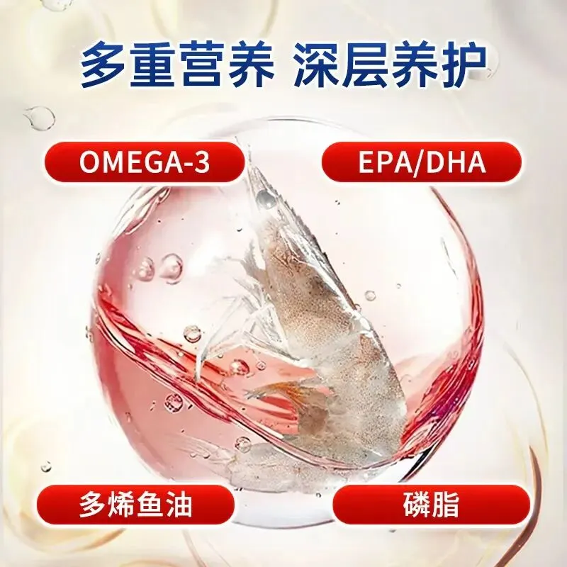 2. 配方科学(20%):海洋磷脂含量≥50%,Omega-3配比符合WHO推荐标准,天然虾青素含量达标,无人工添加剂;