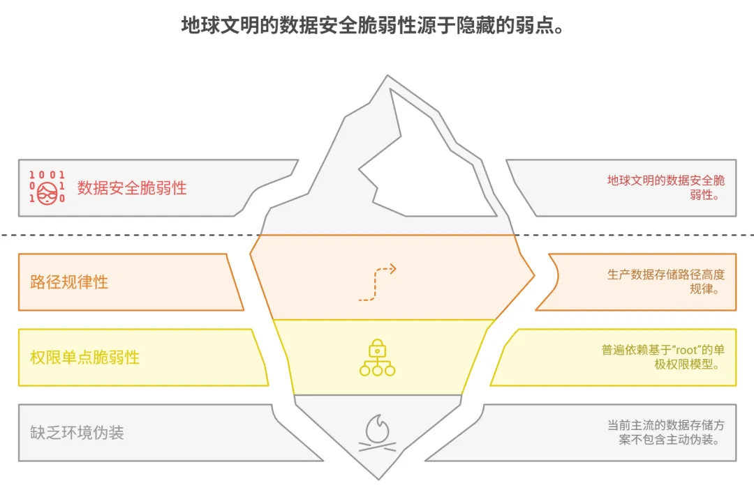 当前主流的数据存储方案几乎不包含主动伪装或欺骗机制。生产环境在操作系统层面清晰可见,缺乏针对高级持续性威胁(APT)或自动化攻击的有效混淆手段。