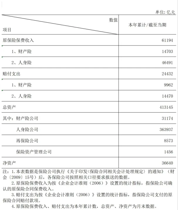 根据国家金融监督管理总局公布的2025年12月保险业经营情况数据显示,截至2025年末,我国保险业资产总额41.31万亿元,同比增长15.1%;净资产3.66万亿元,同比增长10.2%。