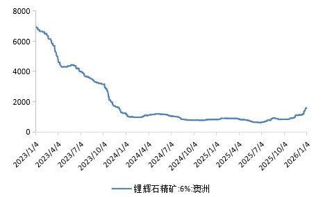 图2:澳洲6%锂辉石精矿价格走势(美元/吨(CIF))