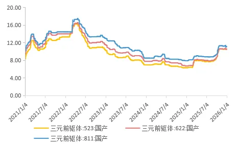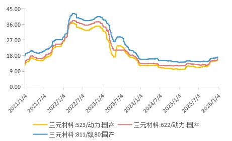 正极材料:三元前驱体价格上涨,三元正极材料价格上涨