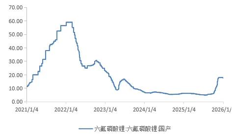 本周六氟磷酸锂价格下跌。六氟磷酸锂本周末均价为13.80万元/吨,较上周末跌幅6.44%。