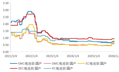 电解液:六氟磷酸锂价格下跌,溶剂价格下跌