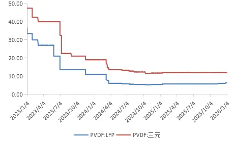 本周PVDF价格稳定。本周末LFP用PVDF均价为6.00万元/吨,与上周末持平,三元用PVDF均价为11.95万元/吨,与上周末持平。