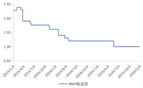 本周NMP价格稳定。本周末国产电池级MNP均价为1.00万元/吨,与上周末持平。