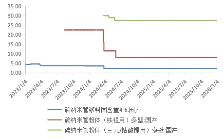 辅材:碳纳米管价格稳定,导电炭黑价格保持稳定