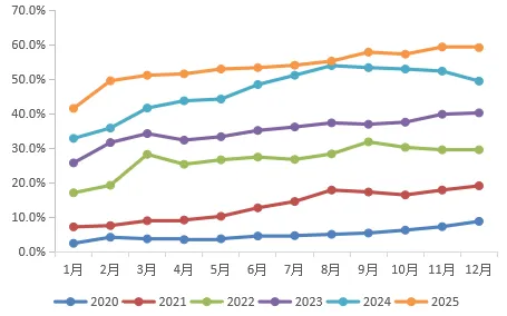 12月新能源车在国内总体乘用车的零售渗透率59.1%,较去年同期提升9.6个百分点。