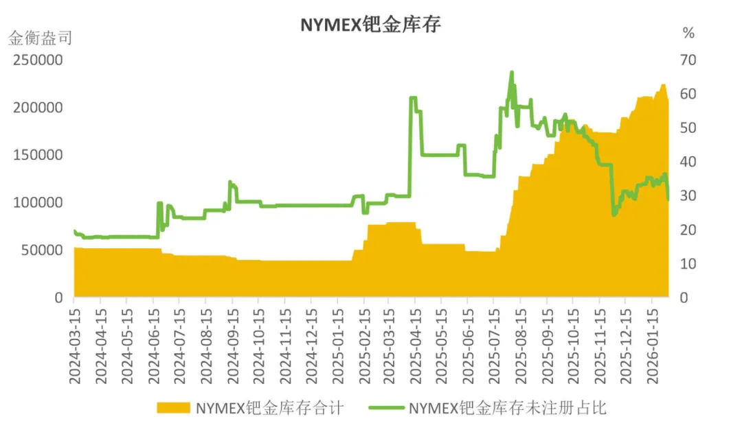 (2)供需端:2026年铂金市场预计仍将出现供应缺口,不过缺口将缩小,铂金矿产供应预计略高于2026年,再生供应预计温和增长,消费端,预计全球铂金需求因汽车、工业和首饰需求疲软而有所下降,不过基于消费者重新青睐铂金,首饰需求亦可能出现向上空间;钯金方面,预计2026年钯金市场过剩规模将扩大,再生供应将在2025年反弹的基础上继续增加,矿产供应预测偏高,其中俄罗斯产量增长将抵消部分北美减产,消费端,全球钯金需求预计略微下降,因为轻微增长的工业需求被减少的汽车催化剂需求所抵消。