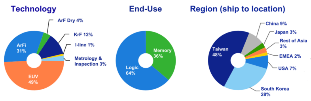 作为全球市值最大的半导体设备供应商,ASML也是该领域的领导者,对EUV光刻(Extreme UltraViolet)这一关键技术拥有准垄断地位。光刻是将处理器的“节点”雕刻在硅晶圆上,从而变成计算机芯片的方法。芯片越先进,节点越小,光刻工艺越复杂。节点的不断小型化和光刻技术的改进使得计算机年复一年变得更加强大。EUV 允许超小型节点,最高可达 7 nm,甚至 5 nm和 3 nm。这些先进制程节点级别通常被认为是人工智能、机器学习、5G、AR/VR 和高级云服务等应用程序的必备条件。EUV目前处于中美紧张局势和贸易战的中心。2022年夏天,美国禁止向中国大陆出口EUV设备。ASML 是一家非常著名的芯片设备制造商,美国施加压力限制向其主要竞争对手出口该技术,这一地位得到了提升。因此,ASML 是所有寻求制造最先进芯片的制造商的重要供应商。