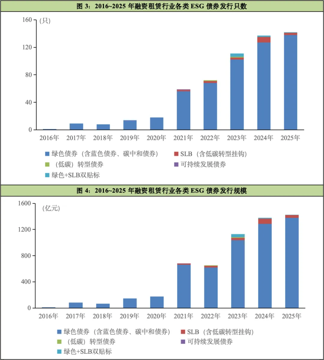 2025年,我国持续构建绿色金融政策体系,出台的多项纲领性文件明晰了融资租赁行业绿色租赁的业务边界与发展方向,为融资租赁行业ESG债券的发行提供了坚实的制度基础。在国家层面,2025年1月,国家金融监督管理总局联合中国人民银行发布《银行业保险业绿色金融高质量发展实施方案》,为未来五年绿色金融发展描绘了清晰的蓝图,其中明确要求金融租赁公司“发挥融资与融物相结合的特色功能,加大绿色租赁领域投入力度”,鼓励金融租赁公司参与绿色债券、资产证券化等业务,支持绿色项目融资;2025年3月,随着《国务院办公厅关于做好金融“五篇大文章”的指导意见》的落实,融资租赁作为“设备更新”的核心金融工具,其绿色融资渠道得到进一步拓宽;2025年8月,中国人民银行等七部门发布《关于金融支持新型工业化的指导意见》,明确融资租赁在支持新型工业化中发挥“融资与融物”双重功能,鼓励服务制造业数字化、智能化、绿色化转型,并拓展资产证券化等创新业务。