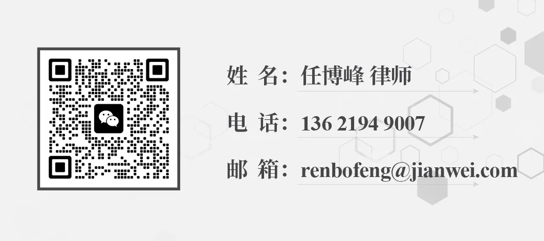 本微信公众号所发布的资讯或文章仅为交流目的,不代表建纬律师事务所或其律师出具的任何法律意见或建议。如需转载或引用该等文章的任何内容,请注明出处。任何依据本文的全部或部分内容而作出的作为或不作为的决定及因此造成的后果由行为人自行负责,建纬律师事务所及文章作者不承担任何责任。如果您需要相关法律意见或法律服务,欢迎与本所律师联系。