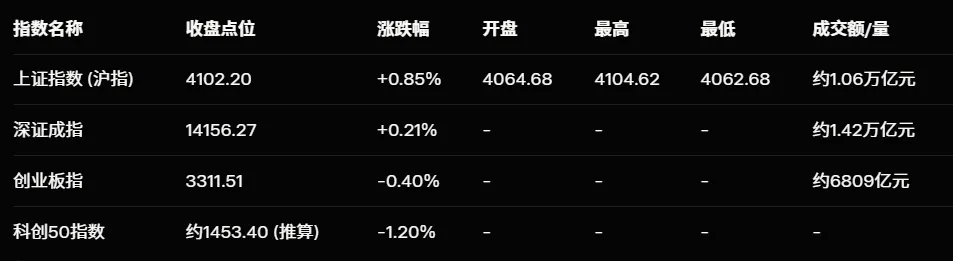 以下是主要指数收盘数据(基于最新实时行情汇总):