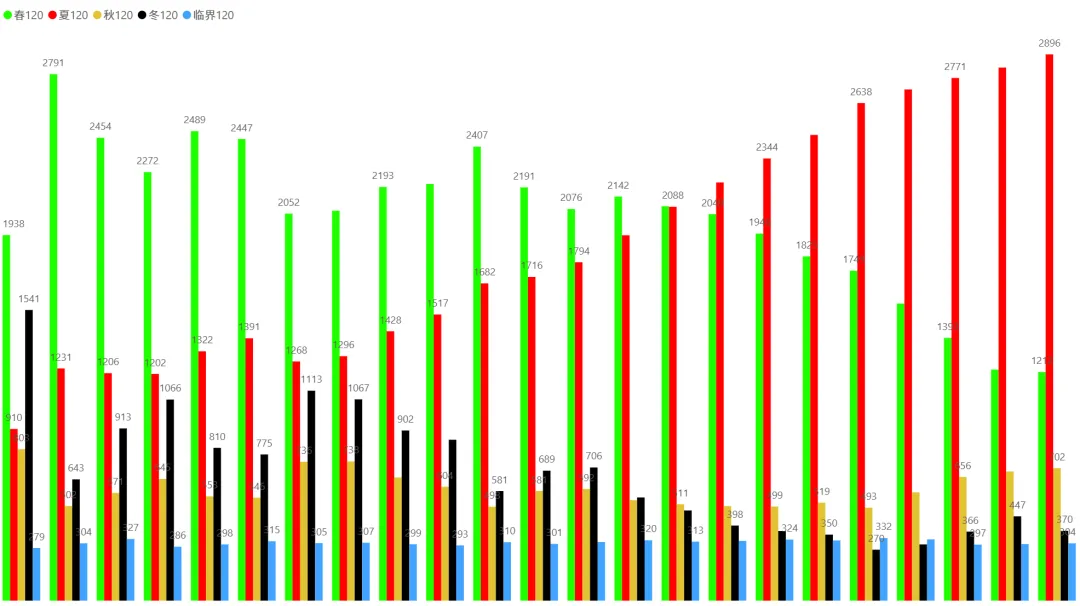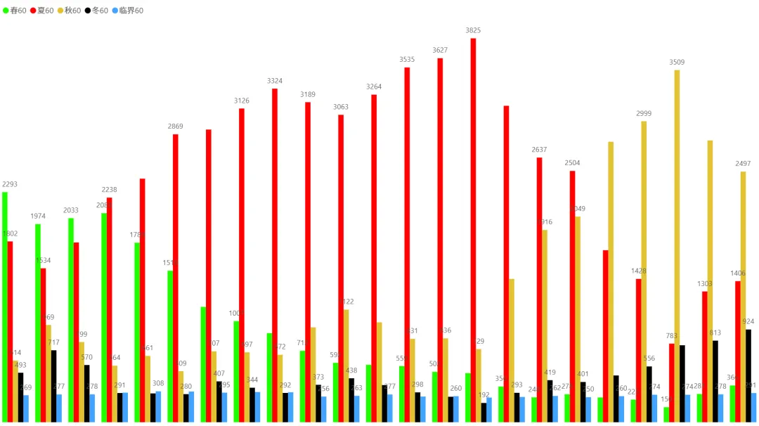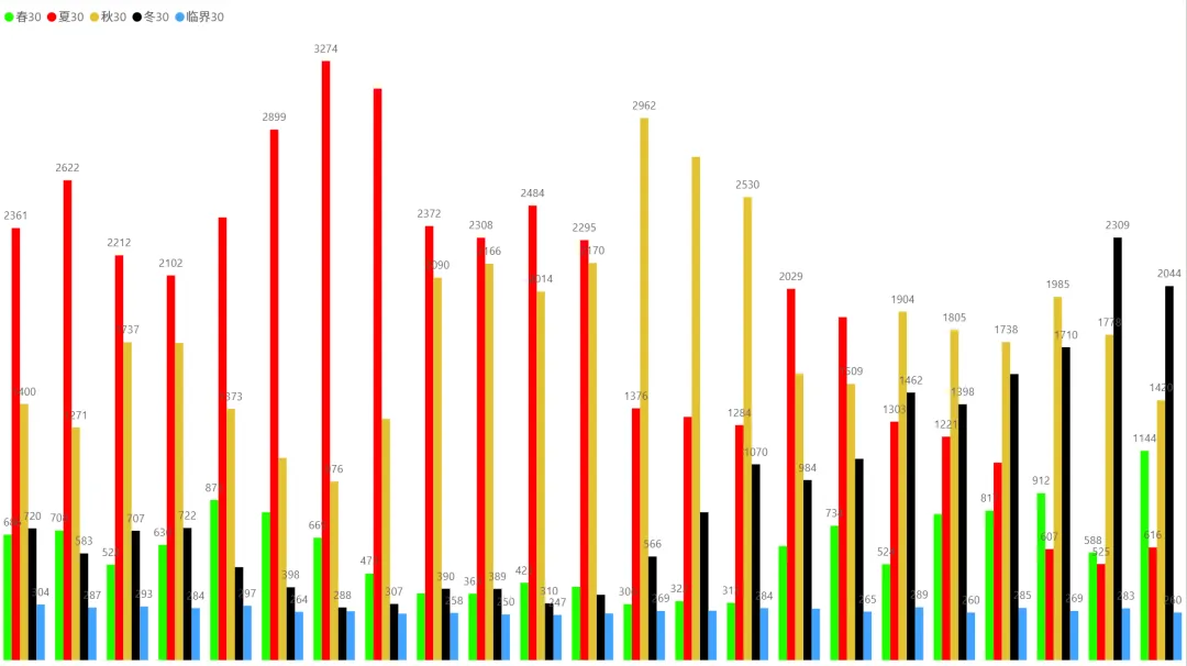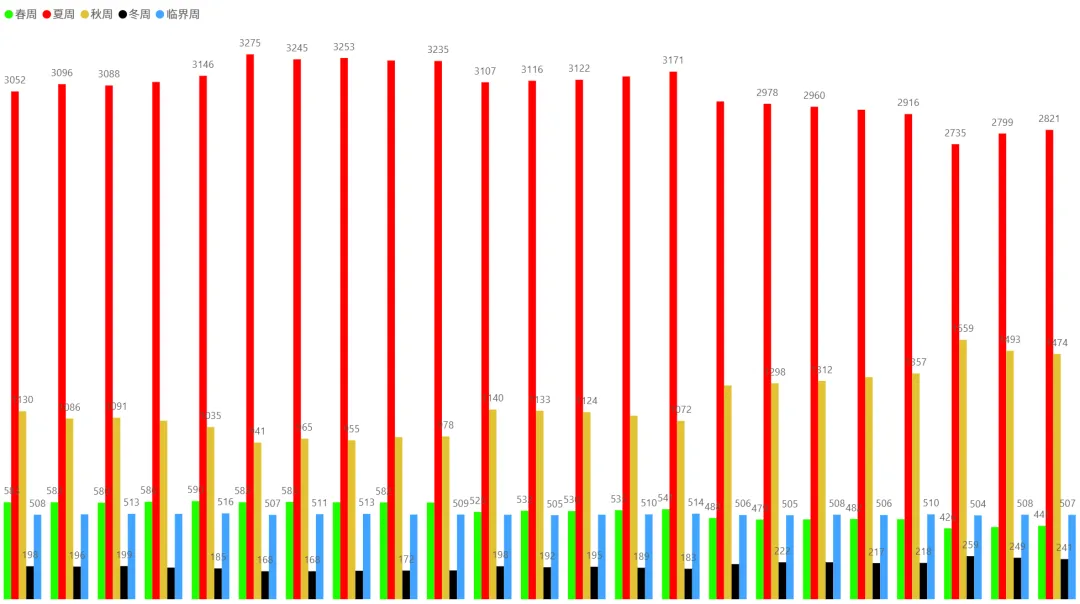 2、各时间周期四季分布趋势(1月5日~2月4日):