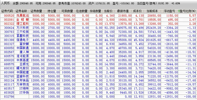 根据上个交易日复盘标的及今日盘中量化指标预警操作,目前持仓如下: