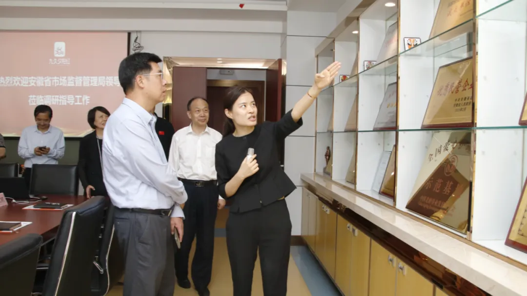 2024年4月25日,安徽省市场监管局副局长陈睿、安徽省市场监督管理局标准化处处长温家铨、安徽省市场监督管理局标准化处主任钱隆、合肥市市场监督管理局副局长许景高、合肥市市场监督管理局标准化处处长尤爱城、区市场监管局局长王先进、区市场监管局质量技术监管科副科长汪娟等一行赴九久夕阳红指导调研。