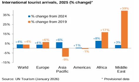 2026年国际旅游有望仍保持3%-4%的增速,强劲的旅游消费需求、增强的航空连通性和新兴市场出境游增长是重要驱动力。