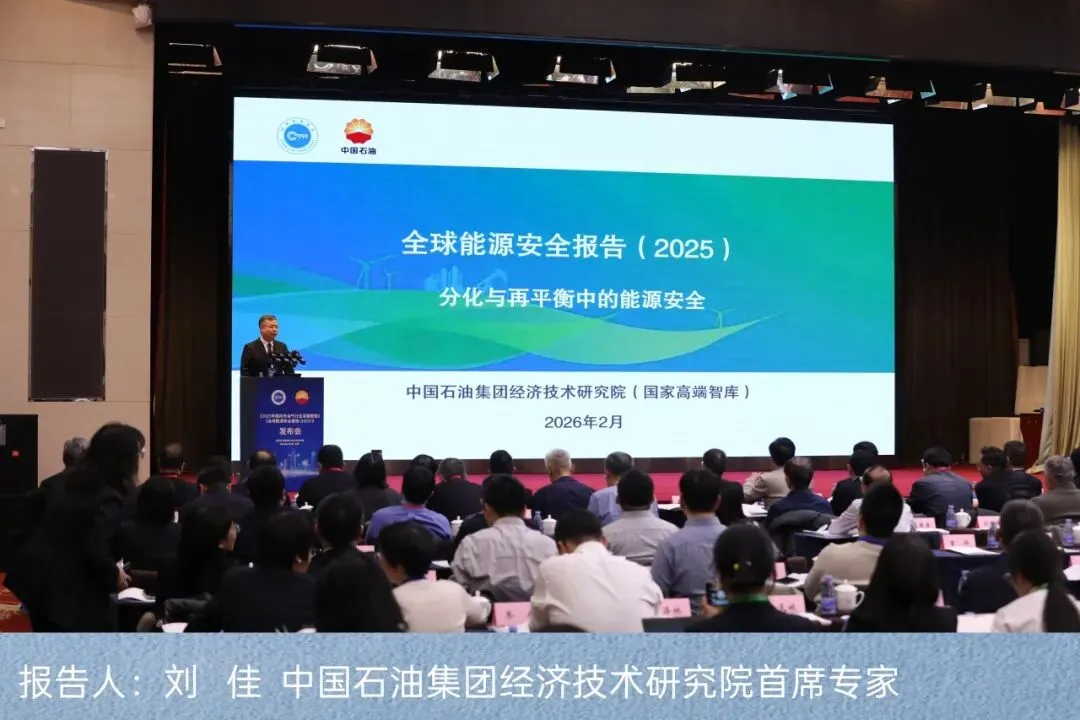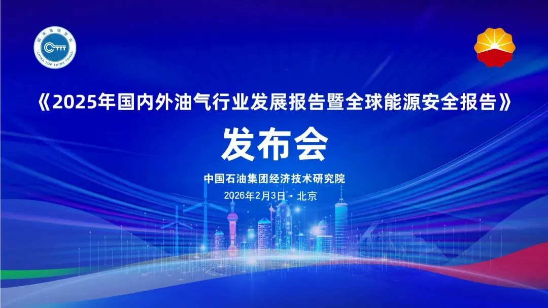 2026年2月3日,国家高端智库中国石油集团经济技术研究院在北京举办《2025年国内外油气行业发展报告》《全球能源安全报告(2025)》发布会。这是该院连续第18年发布油气行业发展报告、连续第4年发布全球能源安全报告,发布会还连续第2年同步对外发布《中石油经研院能源数据手册》。发布会吸引了来自政府部门、能源企业、智库、高校等近90家机构及30家国内外媒体的近400位嘉宾现场参会,多平台网络直播观看量达 2130 万人次,创历史新高。