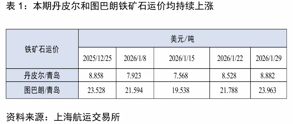 近日,上海国际航运研究中心国际航运研究所发布《国际干散货运输市场双周报(2026.1.19-2026.2.1)》。