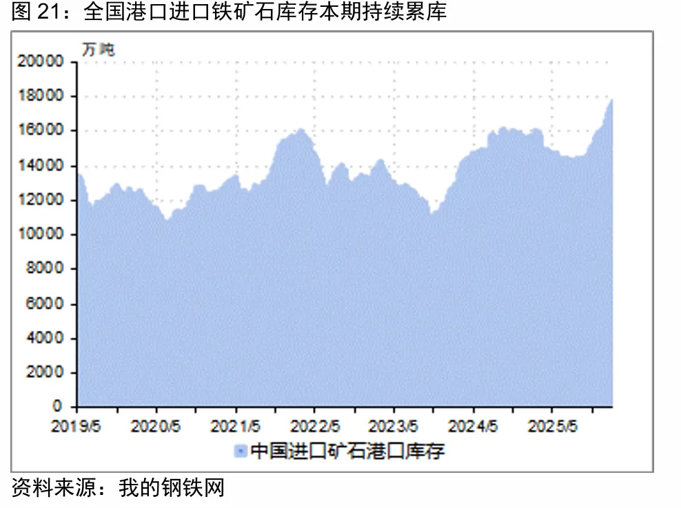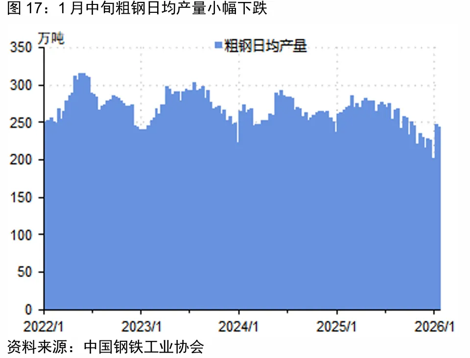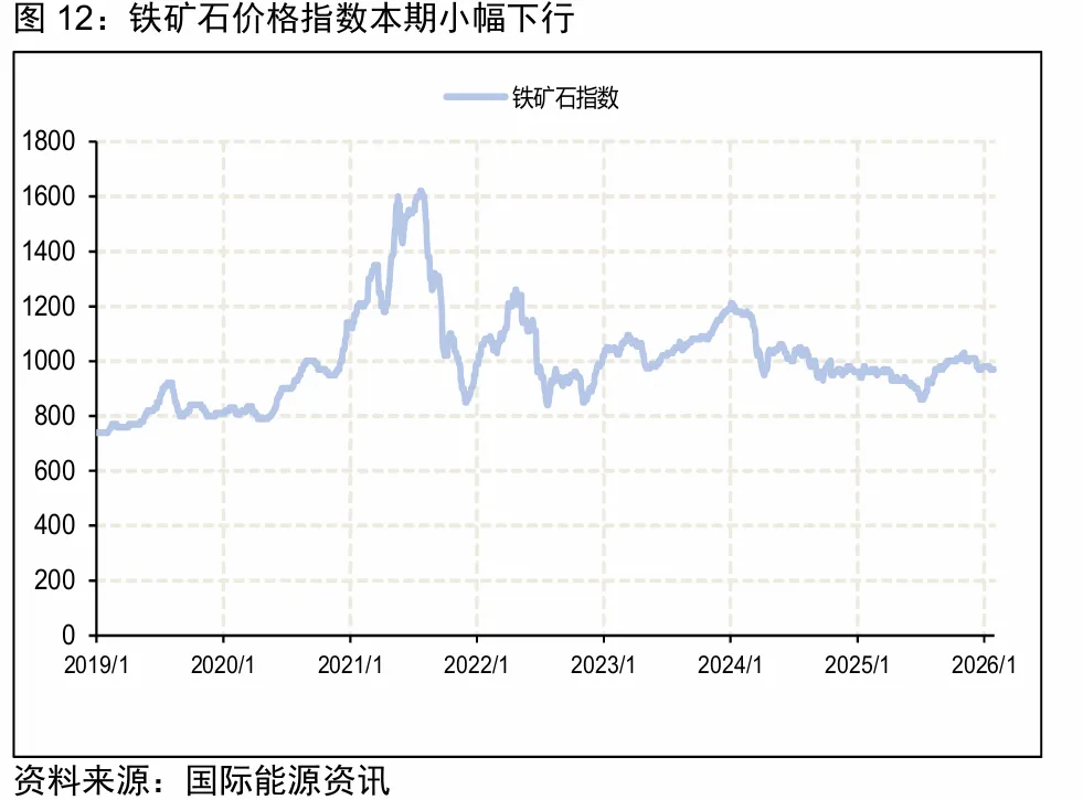 1 月份,铁矿石供给端全球铁矿石发运量季节性回落,环比下降 2000 万吨,单月同比增量超 1500 万吨。中国铁矿石进口量创历史新高,单月同比增量 1200 万吨。