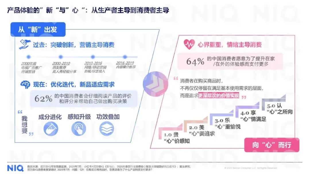 产品价值重构:消费者对“心”价值的追求层层递进,从为高品质支付溢价(贵“心”价),到追求美学表达(美“心”美)、愉悦感受(乐“心”重)、情感满足(享“心”情),最终达成品牌认同(认“心”之所向)。