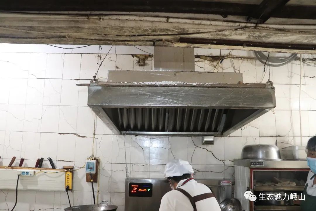 检查情况:生熟食混放,后厨泔水桶未加盖,抽油烟机积污。