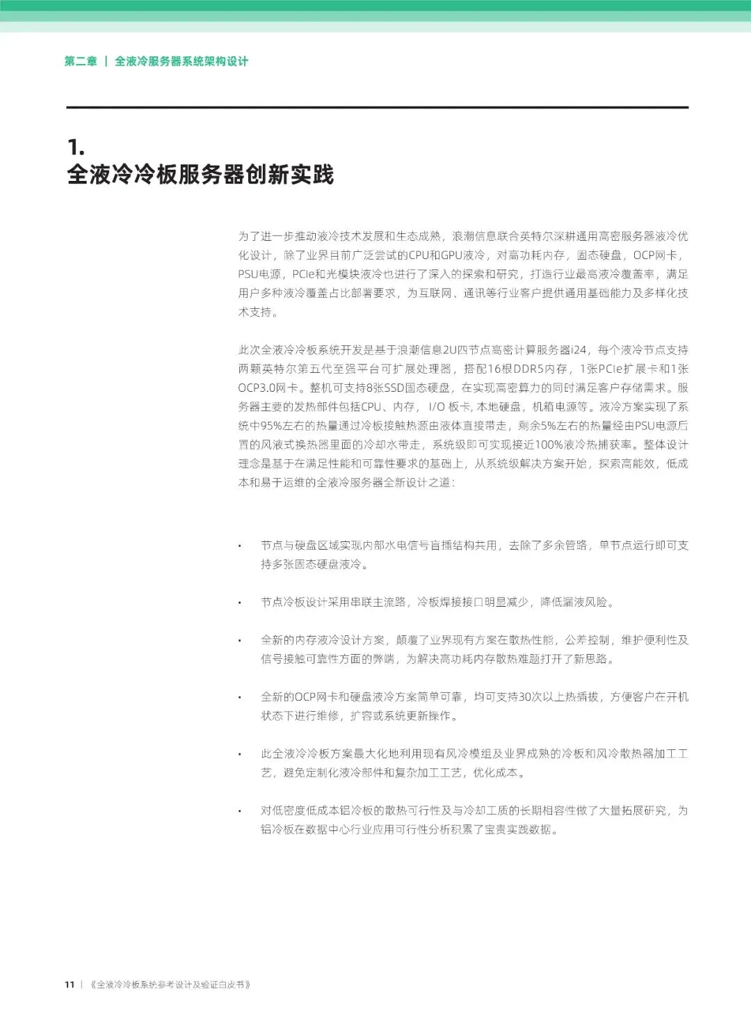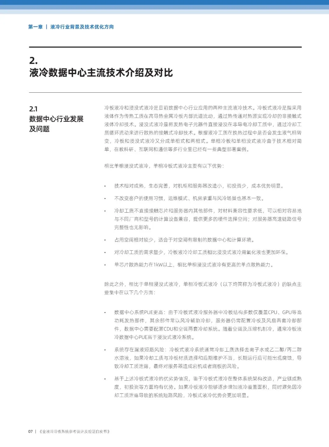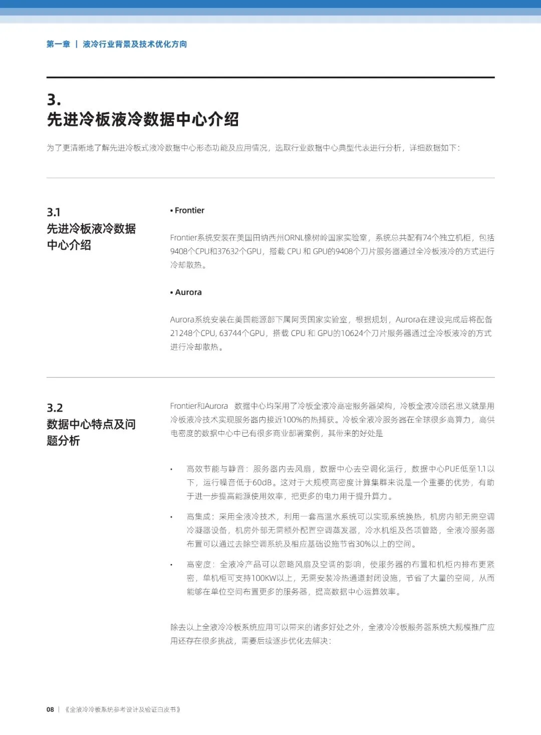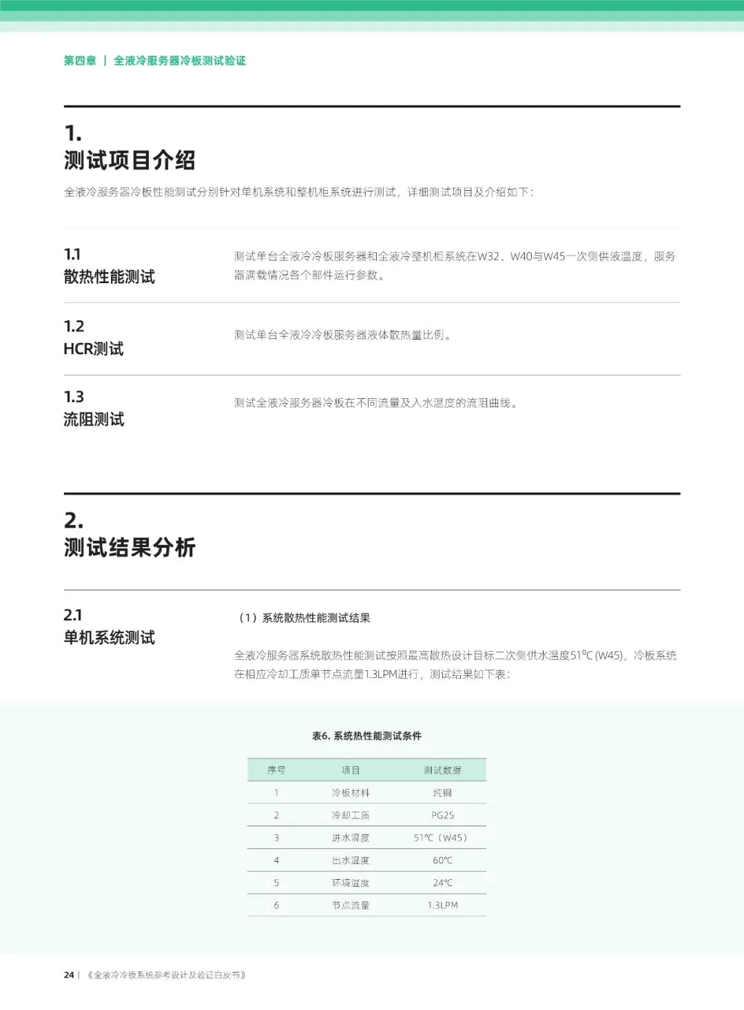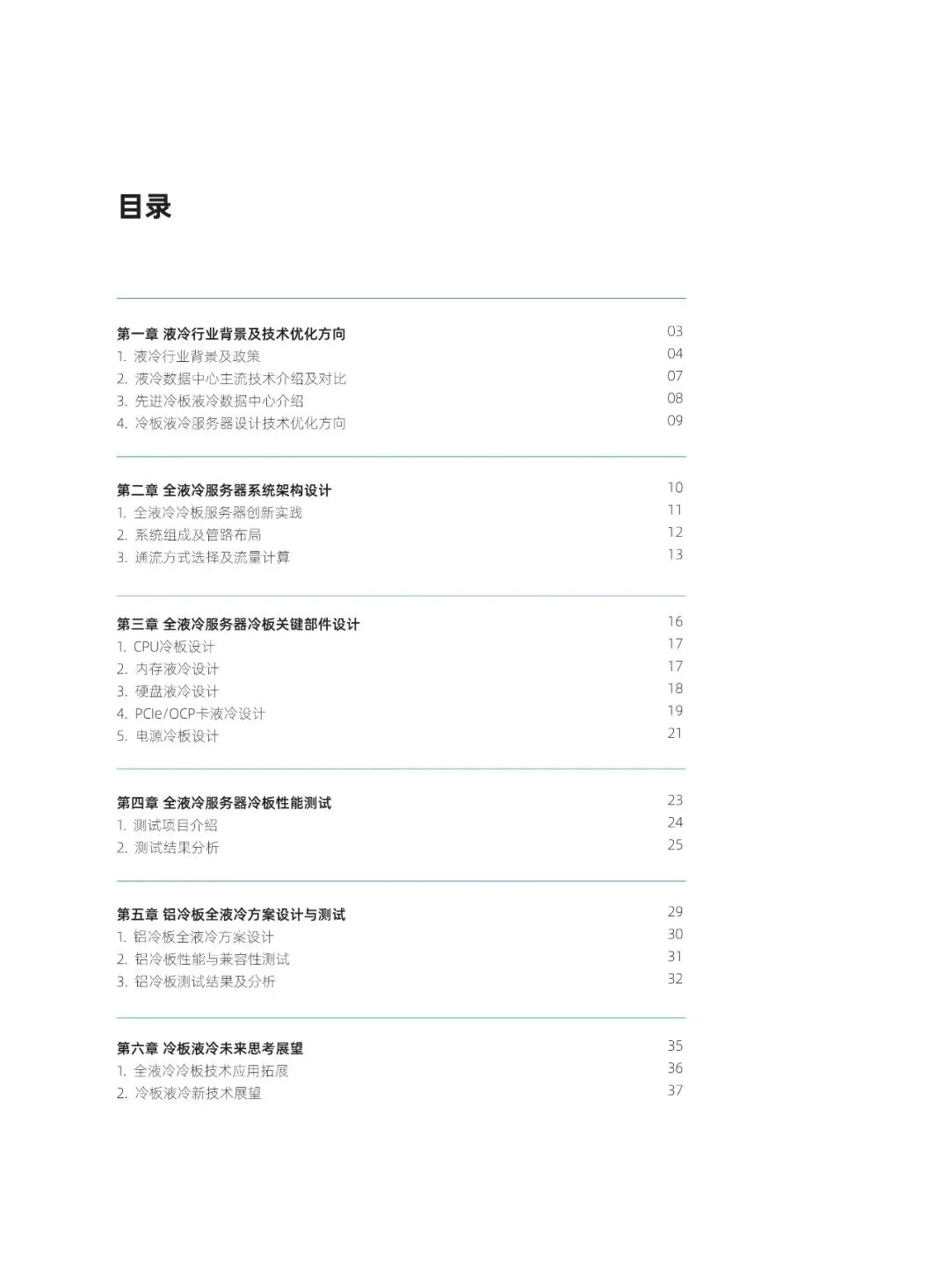 该白皮书发布于2024年1月,围绕全液冷冷板系统展开,涵盖行业背景、系统设计、部件设计、性能测试、铝冷板方案及未来展望等方面,为数据中心液冷技术应用提供全面参考。