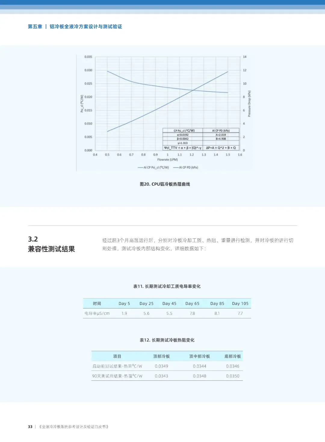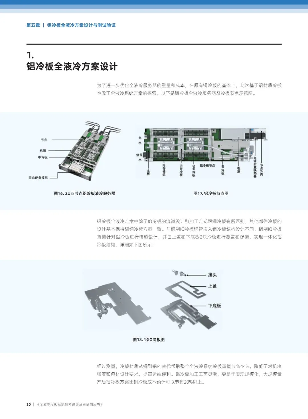 :铝冷板全液冷方案在保证性能的同时可节省重量和成本,IO 冷板设计有差异。通过测试铝冷板的换热、流动性能及与冷却工质的兼容性,结果表明其散热性能与铜冷板相近,兼容性良好。 - 冷板液冷未来思考展望