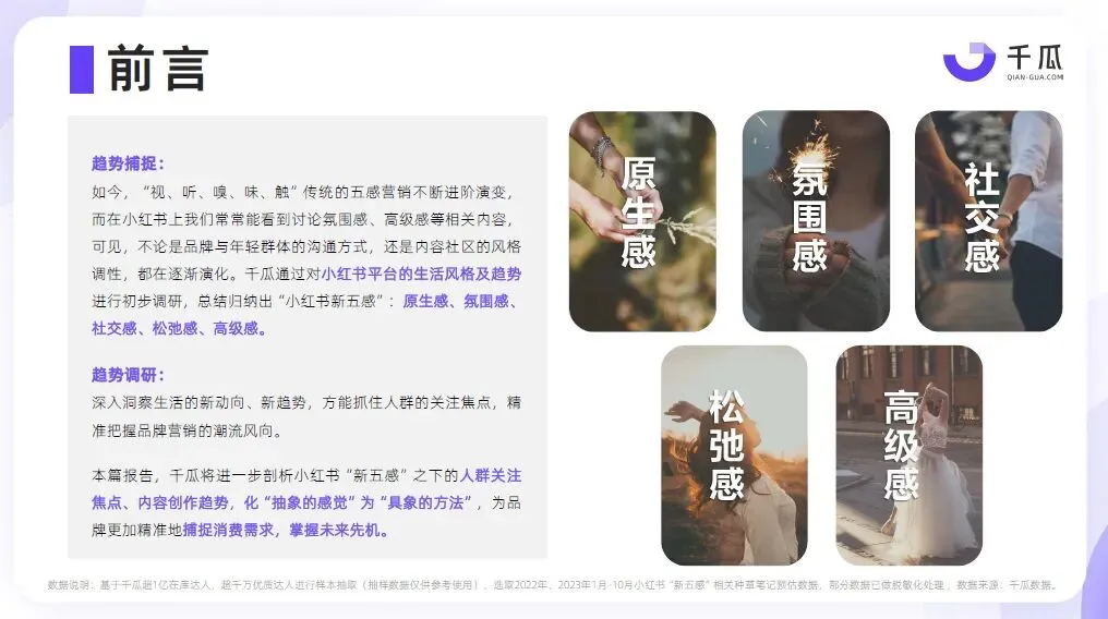 选取喜茶、观夏、三顿半等 30 个新消费品牌,监测其包装升级后在小红书的内容传播、用户复购等数据。 三、新五感维度的深度解读:用户行为与消费逻辑