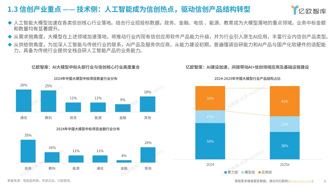 技术驱动:AI大模型推动信创产品结构转型,智能算力基础设施快速发展。