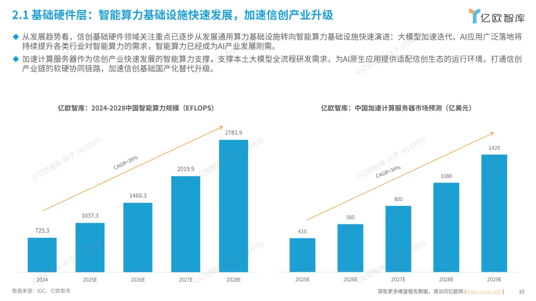 智能算力:加速计算服务器支撑大模型研发,推动信创产业向智能算力演进。