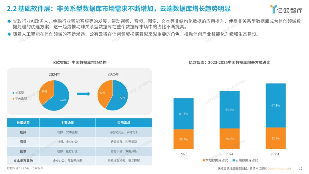 非关系型数据库需求上升:视频、音频等非结构化数据处理推动市场结构变化。