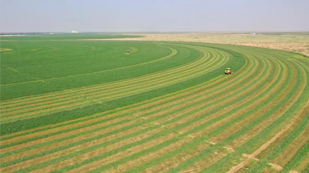 乌兰布和沙漠面积约1万平方公里,沙化严重且威胁黄河流域生态安全,当地经济也因环境恶劣长期滞后。中国圣牧在当地开展了“沙漠治理+种养结合+产业循环”创新模式。其一是构建立体植被防护体系,包括在沙漠累计种植超9800万株旱生乔木与沙生灌木,将奶牛粪污腐熟为有机肥还田等;其二是搭建高效资源利用体系,包括引入数智化节水灌溉系统,建设2.5MW牛舍分散式光伏等;其三是打造有机循环产业模式,包括建成46万亩有机种植基地、21座有机牧场,养殖11万余头有机奶牛等,最终形成“草-畜-肥-田-草”的资源循环。
