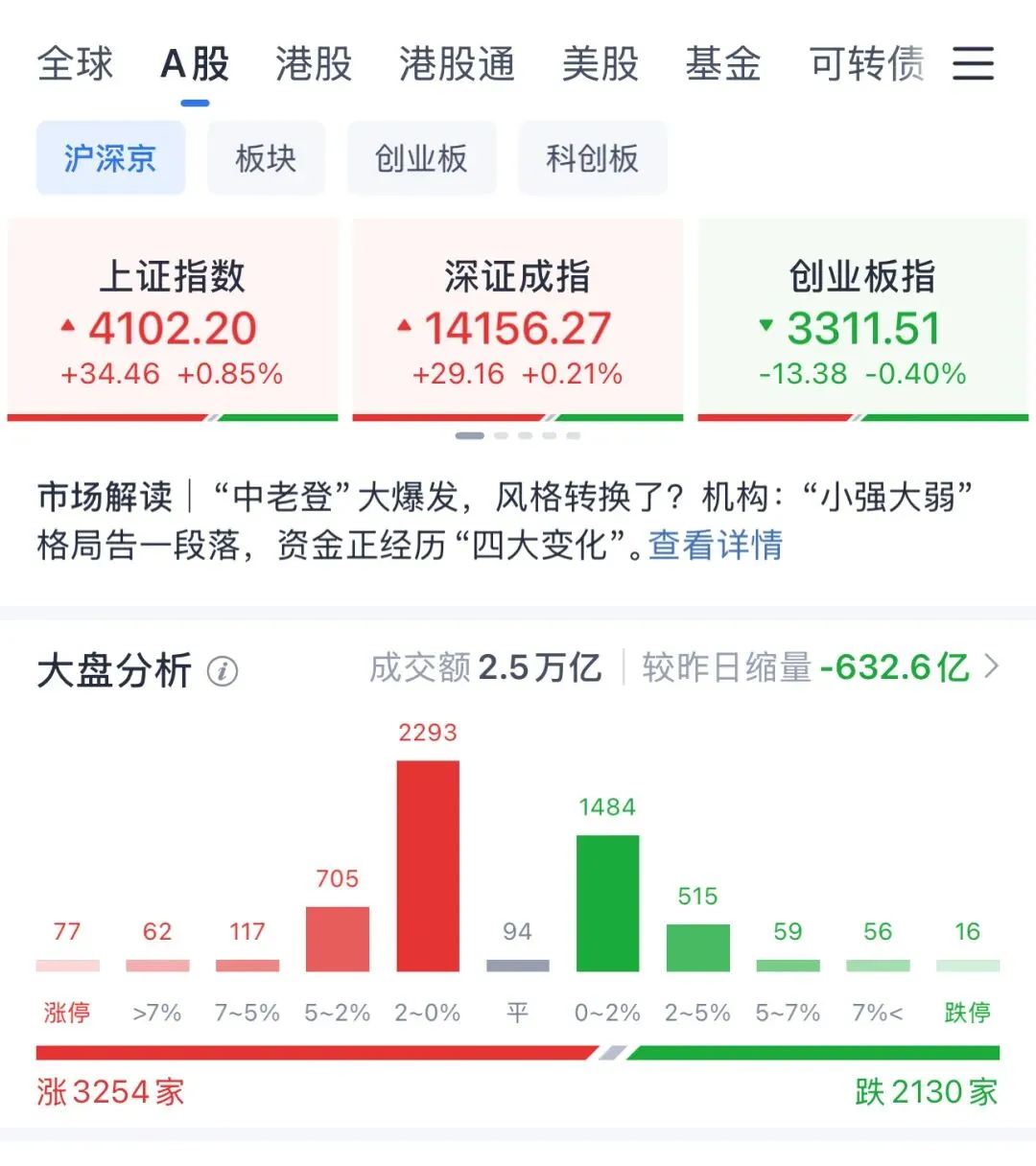 今日市场探底回升,沪指重返4100点,截至收盘,沪指涨0.85%,深成指涨0.21%,创业板指跌0.4%。今天市场热点快速轮动,以传统概念的煤炭板块带动,全市场超3200只个股上涨。
