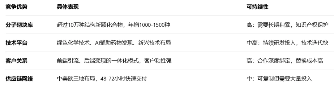 药石科技在CXO行业构建了独特且可持续的竞争优势,其护城河主要体现在分子砌块库、技术平台和客户关系三个方面。