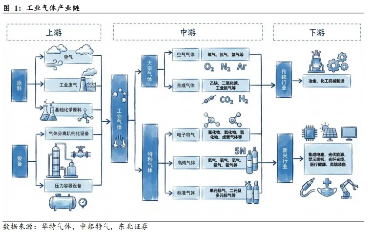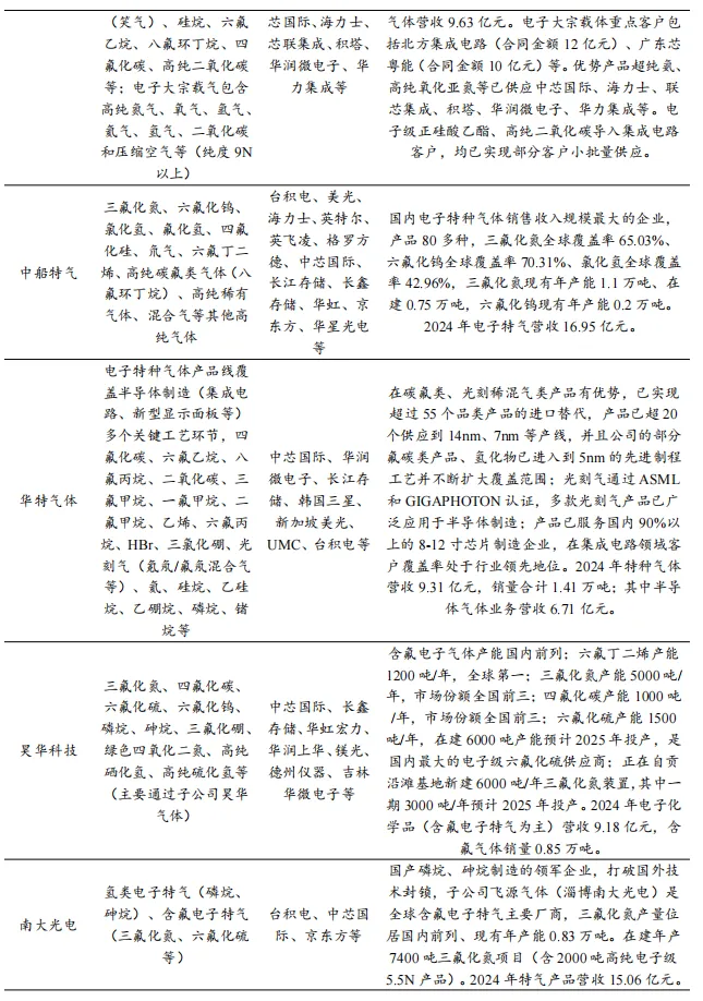 建议关注在电子大宗气体和电子特气领域具备核心卡位优势的领军企业。